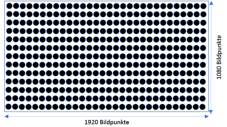 Zu den hochauflösenden Formaten gehört ebenso das Full-HD- oder HDTV-1080-Format (High Definition Television). Die Anordnung von 1920 x 1080 = 2.073.600 Bp lichtempfindlichen Sensoren entspricht dem Full-HD-Format (Full High Definition).