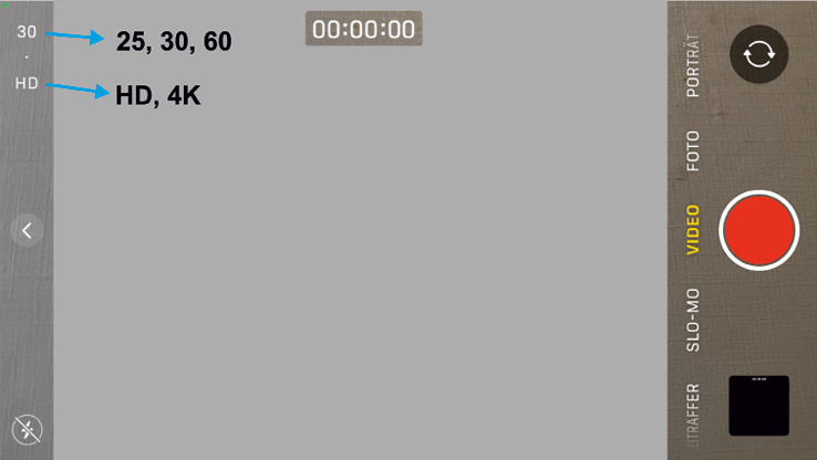 Abb. 2.3: IPHONE SE – Videoparameter