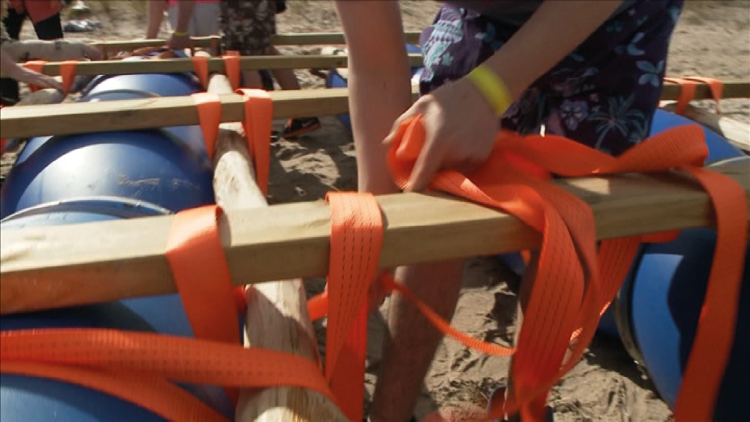 Abb. 4.17: Was – Halbnah – Floß mit einfachen Mitteln bauen