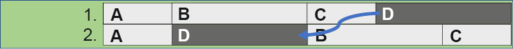 Ein vorhandener Clip wird an gleicher Stelle durch einen anderen Clip ersetzt. Die Länge beider Clips ist gleich.