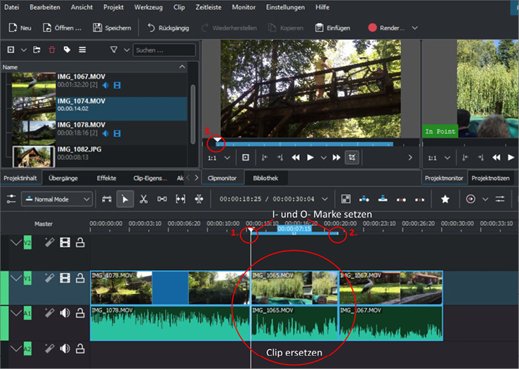 Abb. 6.9: Ersetzen – Clip wird gegen einen anderen Clip ausgetauscht.