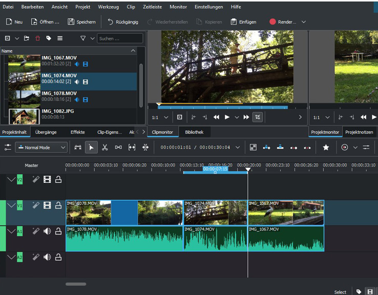 Es ist wenig überraschend, dass bei Fotos die Audiospur fehlt und zu Audiodaten keine Bilder gehören. Beim Insert solcher Mediendateien muss Audio- oder Bildspur nachträglich ergänzt werden, falls Bild- oder Tonlöcher unerwünscht sind.