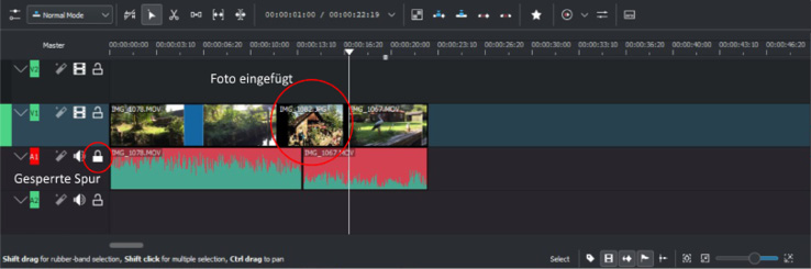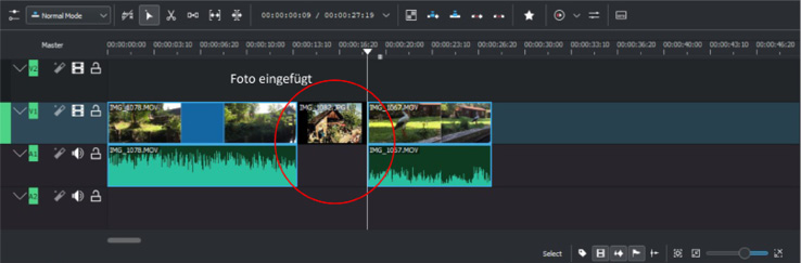 Abb. 6.31: Overwrite Foto – Foto wird eingefügt, Audiospur gesperrt.