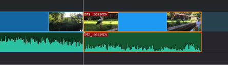 Der zwischen zwei Clips eingebettete Clip wird aus der Timeline entfernt. Die entstehende Lücke wird geschlossen.