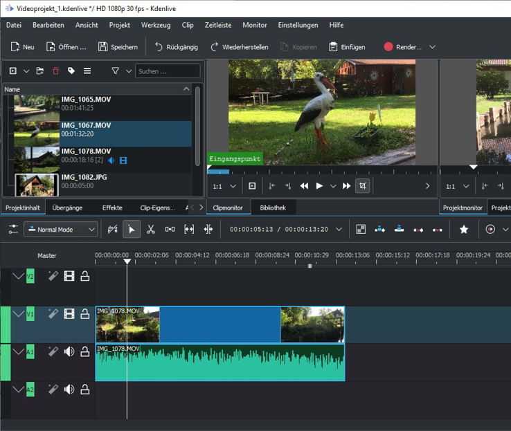 Abb. 6.28: Insert – Clip wird eingefügt, das Video verlängert.